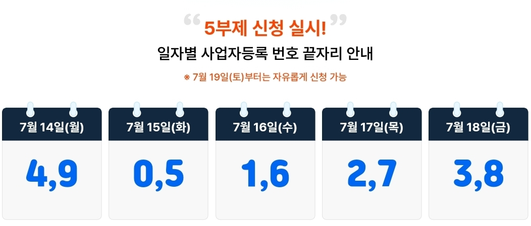 - 신청 첫 주는 5부제 시행! 사업자등록번호 끝자리 확인 필수!